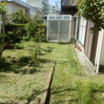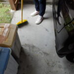 車庫の掃き清掃、玄関ドアの拭き掃除をいたしました。